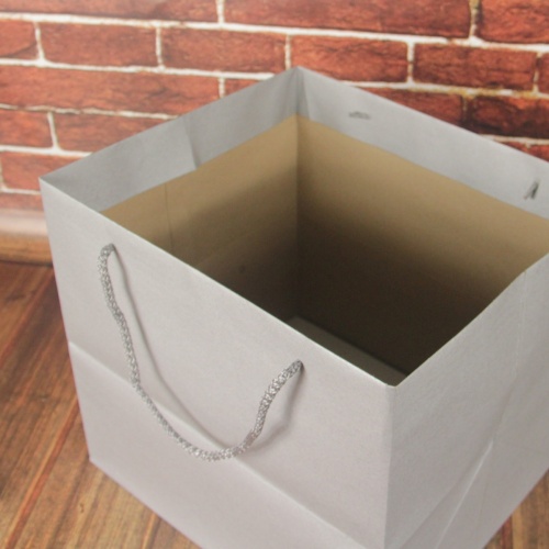 Пакеты бумажные 33х30х28см, цвет - серебро, материал - плотный крафт, ламинация - без ламинации, ручки - шнур, фото 2