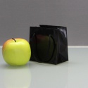Пакеты бумажные 10х10х6см, цвет - черный, материал - мелованная бумага, ламинация - глянец, ручки - шнур, фото 1 (вид спереди)