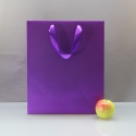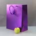 Пакеты бумажные 33х40х16см, цвет - фиолетовый, материал - картон, ламинация - матовая, ручки - лента атласная, фото 1 (вид спереди)