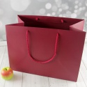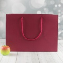Пакеты бумажные 45х32х25см, цвет - бордо, материал - мелованная бумага, ламинация - матовая, ручки - витой шнур, фото 1 (вид спереди)