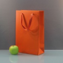 Пакеты бумажные 23х36х10см, цвет - оранжевый, материал - мелованная бумага, ламинация - матовая, ручки - лента хлопковая (киперная), фото 1 (вид спереди)