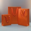 Пакеты бумажные 23х36х10см, цвет - оранжевый, материал - мелованная бумага, ламинация - матовая, ручки - лента хлопковая (киперная), фото 2