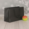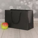 Пакеты бумажные 31х20х13см, цвет - черный, материал - мелованная бумага, ламинация - матовая, ручки - витой шнур, фото 1 (вид спереди)