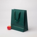 Пакеты бумажные 33х40х16см, цвет - зеленый, материал - дизайнерская бумага, ламинация - без ламинации, ручки - лента атласная, фото 1 (вид спереди)