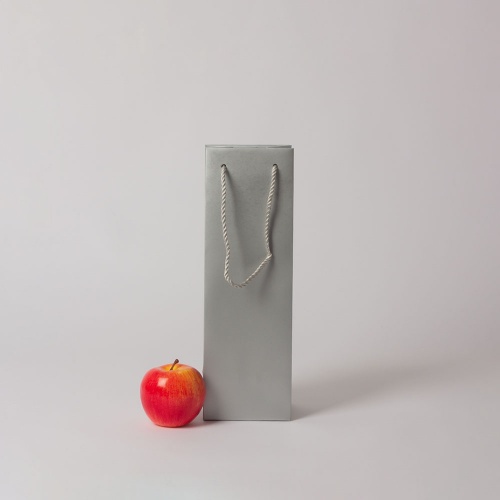 Пакеты бумажные 23х36х10см, цвет - серебро, материал - картон, ламинация - матовая, ручки - витой шнур, фото 1 (вид спереди)