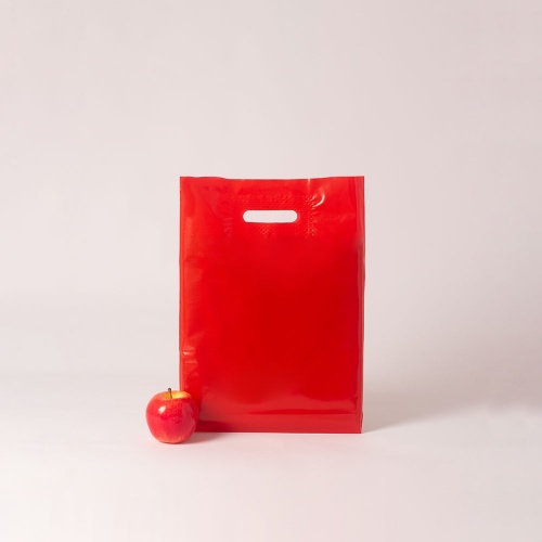 Полиэтиленовые пакеты 20х30х3см, цвет - красный, материал - полиэтилен, ламинация - без ламинации, ручки - прорубные, фото 2