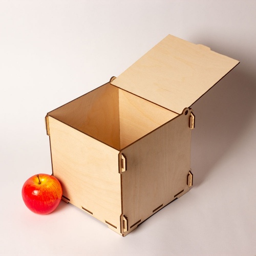 Ящики из фанеры 19х18х19см, цвет - бежевый, материал - дерево, ламинация - без ламинации, ручки - прорубные, фото 1 (вид спереди)