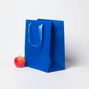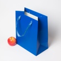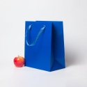 Пакеты бумажные 26х32х14см, цвет - синий, материал - картон, ламинация - матовая, ручки - лента репсовая, фото 1 (вид спереди)