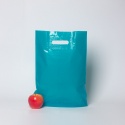Полиэтиленовые пакеты 30х40х3см, цвет - бирюзовый, материал - полиэтилен, ламинация - без ламинации, ручки - прорубные, фото 1 (вид спереди)