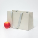 Пакеты бумажные 31х20х13см, цвет - бежевый, материал - картон, ламинация - матовая, ручки - лента репсовая, фото 2