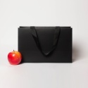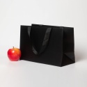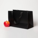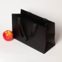 Пакеты бумажные 31х20х13см, цвет - черный, материал - картон, ламинация - матовая, ручки - лента репсовая, фото 1 (вид спереди)