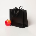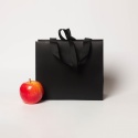 Пакеты бумажные 23х20х10см, цвет - черный, материал - мелованная бумага, ламинация - матовая, ручки - лента репсовая, фото 1 (вид спереди)