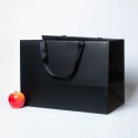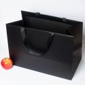 Пакеты бумажные 45х32х24см, цвет - черный, материал - картон, ламинация - матовая, ручки - лента репсовая, фото 1 (вид спереди)