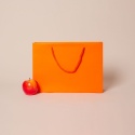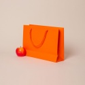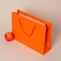 Пакеты бумажные 35х25х10см, цвет - оранжевый, материал - мелованная бумага, ламинация - матовая, ручки - лента репсовая, фото 2