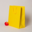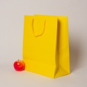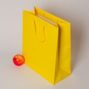 Пакеты бумажные 33х40х16см, цвет - желтый, материал - мелованная бумага, ламинация - матовая, ручки - шнур, фото 1 (вид спереди)