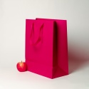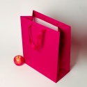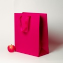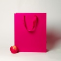 Пакеты бумажные 33х40х16см, цвет - пурпурный, материал - мелованная бумага, ламинация - матовая, ручки - лента репсовая, фото 1 (вид спереди)