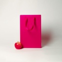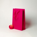 Пакеты бумажные 23х36х10см, цвет - пурпурный, материал - мелованная бумага, ламинация - матовая, ручки - лента репсовая, фото 1 (вид спереди)