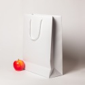 Пакеты бумажные 3х40х12см, цвет - белый, материал - мелованная бумага, ламинация - матовая, ручки - лента репсовая, фото 1 (вид спереди)