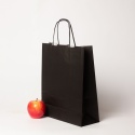 Пакеты бумажные 25х32х11см, цвет - черный, материал - тонкий крафт, ламинация - без ламинации, ручки - крученые (шпагат), фото 1 (вид спереди)