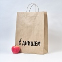 Пакеты бумажные 30х40х13см, цвет - коричневый, материал - тонкий крафт, ламинация - без ламинации, ручки - крученые (шпагат), фото 1 (вид спереди)