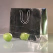 Пакеты бумажные 40х30х12см, цвет - серебро, материал - картон, ламинация - глянец, ручки - шнур, фото 1 (вид спереди)