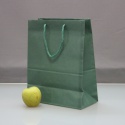 Пакеты бумажные 27х35х15см, цвет - зеленый, материал - тонкий крафт, ламинация - без ламинации, ручки - шнур, фото 1 (вид спереди)