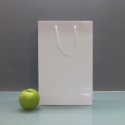 Пакеты бумажные 23х36х10см, цвет - белый, материал - мелованная бумага, ламинация - глянец, ручки - шнур, фото 1 (вид спереди)