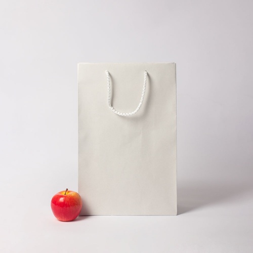 Пакеты бумажные 10х10х6см, цвет - белый, материал - плотный крафт, ламинация - без ламинации, ручки - шнур, фото 1 (вид спереди)
